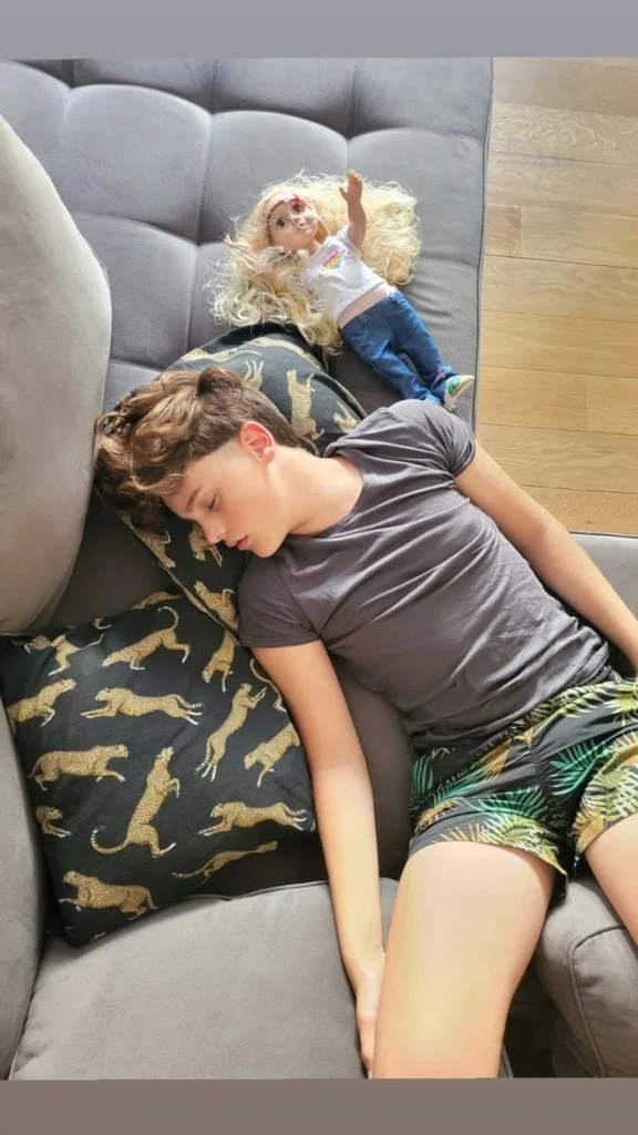 En una de las historias que publicó se los puede ver en el living de la propiedad en el marco de una distendida tarde de verano en la que el calor azotaba a la ciudad de Buenos Aires. Mientras tanto, en la otra, está Bautista durmiendo plácidamente.