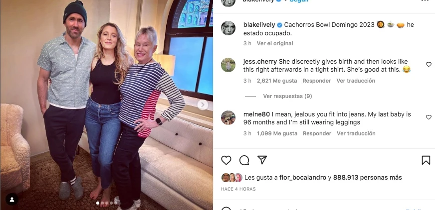 "Cachorros Bowl Domingo 2023", expresó, vía Instagram, en referencia al evento del Superbowl, y continuó: "Estuve ocupada". En la fotografía aparece abrazada a su esposo y a su suegra Tammy, con un pequeño gran detalle: la ausencia de su panza de embarazada.