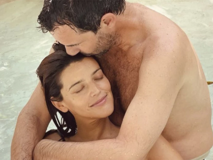 Luego, la actriz se mostró en otra imagen junto a su pareja en un medio acuático, en una pose que bien podrían haberse tomado para practicar un parto en el agua.
