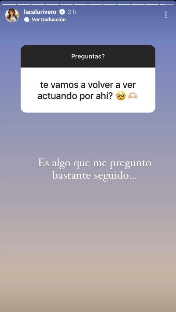 Y reflexionó: "Sin dudas la vida es aprendizaje y adaptación. Y como dice mi médico, en el camino tratar de no enfermarse". Por otro lado, le preguntaron si volvería a retomar la actuación y su vida artística. "Es algo que me pregunto bastante seguido", consideró Calu, dejando el camino libre a la interpretación.