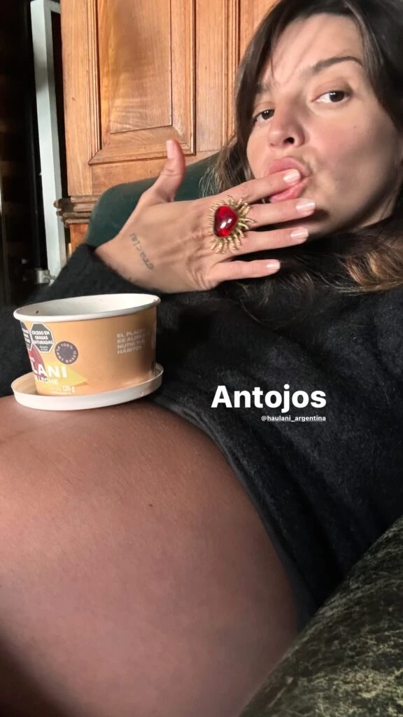 Finalmente, Calu se mostró tomando un helado. "Antojos", escribió sobre una foto donde se luce su hermosa pancita de ocho meses en primer plano. Cabe recordar que Tao, su primer hijo, tiene un año y medio: nació en febrero de 2023 en un parto domiciliario.