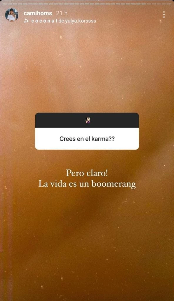 Además, la joven volvió a la carga y opinó sobre el karma. "Pero claro que creo en el karma. ¡La vida es un boomerang!", escribió, filosa.