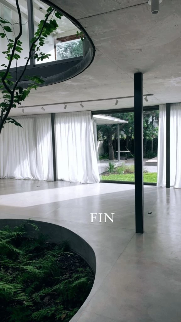 Decoración minimalista y mucha luz en la casa circular. Foto IG.