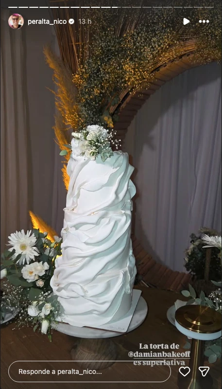 La celebración tuvo un toque dulce y espectacular gracias a la torta de bodas diseñada por el reconocido chef pastelero Damián Basile, más conocido como Damián de Bake Off.