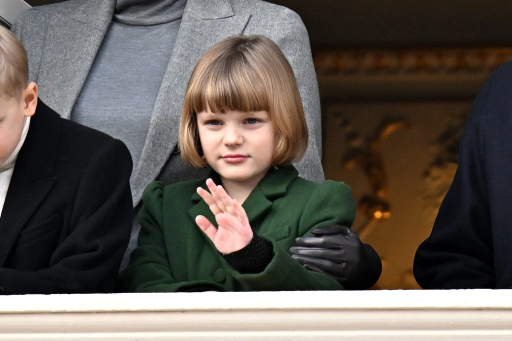 Melanie-Antoinette Costello de Massy, prima segunda del Príncipe Alberto, le dio la bienvenida a la Princesa a la Catedral antes de la misa. Luego se dirigió al palacio donde saludó junto a su marido e hijos desde el balcón. Gabriella vistió un abrigo verde botella y Jacques uno negro con un cuello de camisa blanco.
