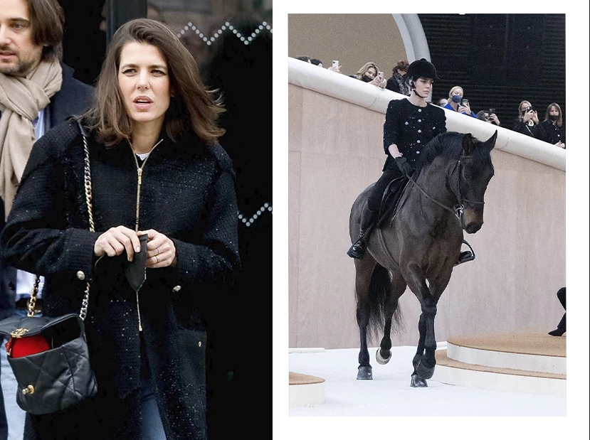 Con una gran puesta en escena, el desfile tuvo una gran sorpresa para todos los presentes, Charlotte Casiraghi, embajadora de Chanel, debutó como modelo sobre la pasarela arriba de un caballo.
