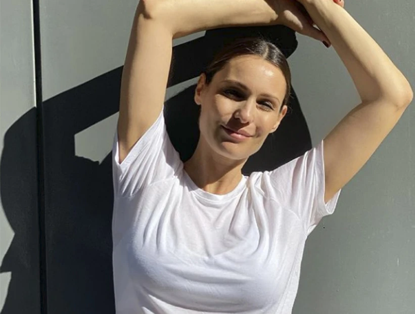 Pampita remolonea en la cama, sin una gota de maquillaje. Divina. Con un jean que no llega a cerrarle el cierre por su panza de 7 meses. Un postal muy de domingo y llena de amor.