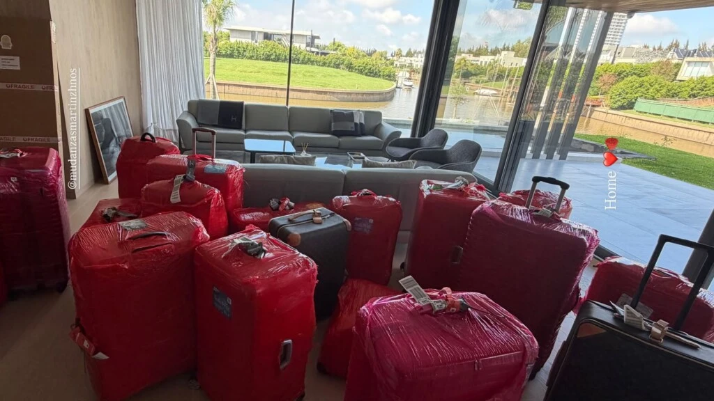 Desde sus redes sociales, la empresaria compartió distintas postales de ese regreso tan esperado. Una de las primeras imágenes mostró el living de su casa en Nordelta repleto de valijas —muchas de ellas envueltas en film rojo— junto a un simple mensaje: “Home”. Un gesto que sintetizó el alivio de volver después de semanas intensas entre Milán, Maldivas, París, Tokio, Shanghái y Kioto.