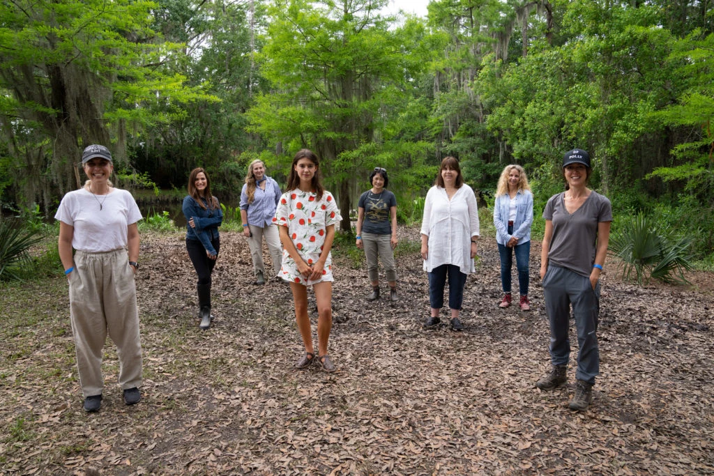 Estoy obsesionada con el musgo español Y los cipreses. Estar aquí y ver el hermoso paisaje y... y estar en los pantanos y aprender a montar ese bote, me encantó. Quiero intentar conseguir ese bote y llevarlo a casa y montarlo en el Támesis, lo cual no creo que se me permita. Pero, sí, ha sido tan hermoso simplemente estar en la naturaleza e hice muchos recorridos y recorridos por pantanos, y leí libros.