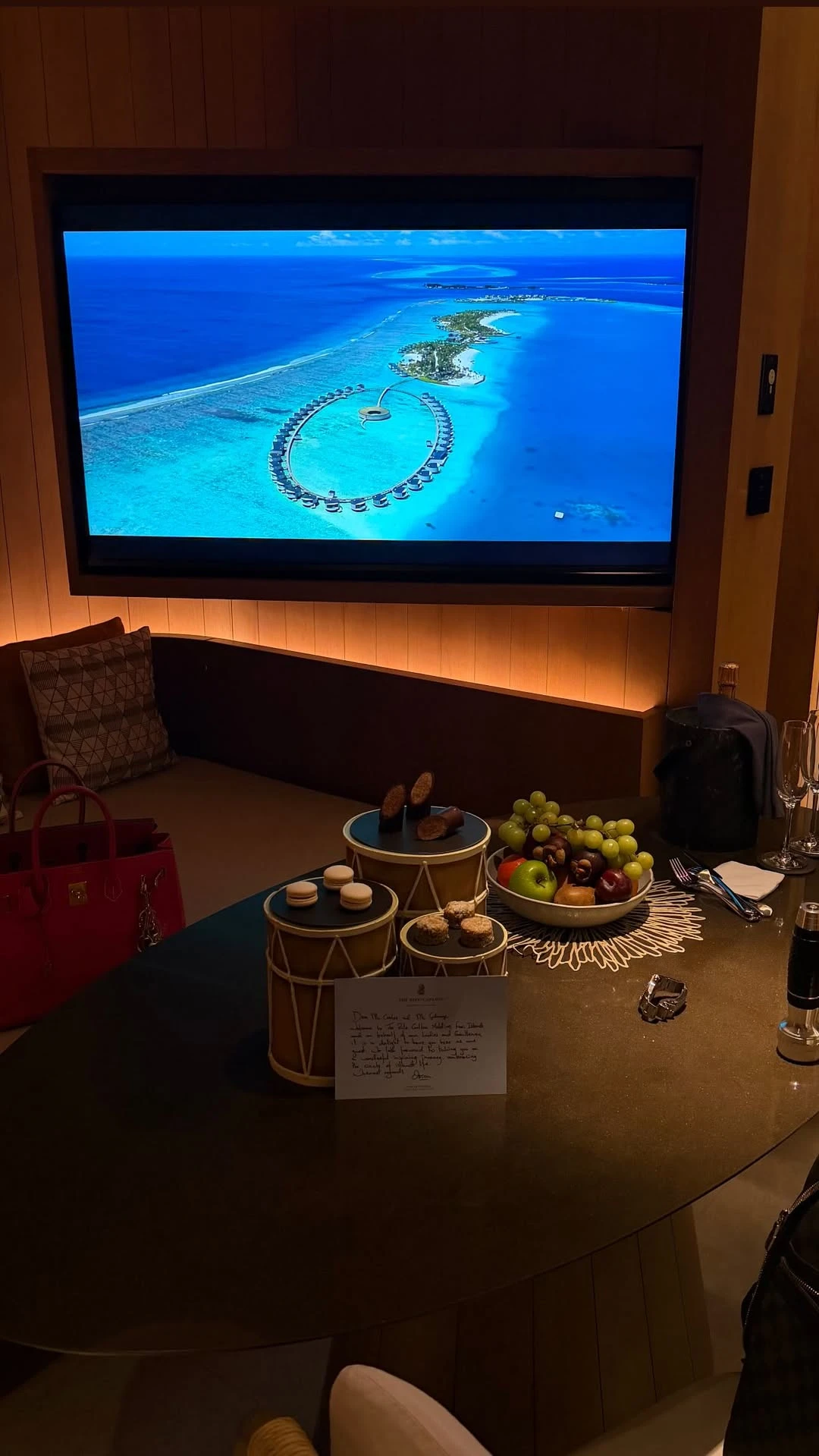 Durante el trayecto, la mediática fue mostrando detalles de la travesía, que incluyó una escala sobre Arabia Saudita antes de llegar al exclusivo destino del océano Índico.