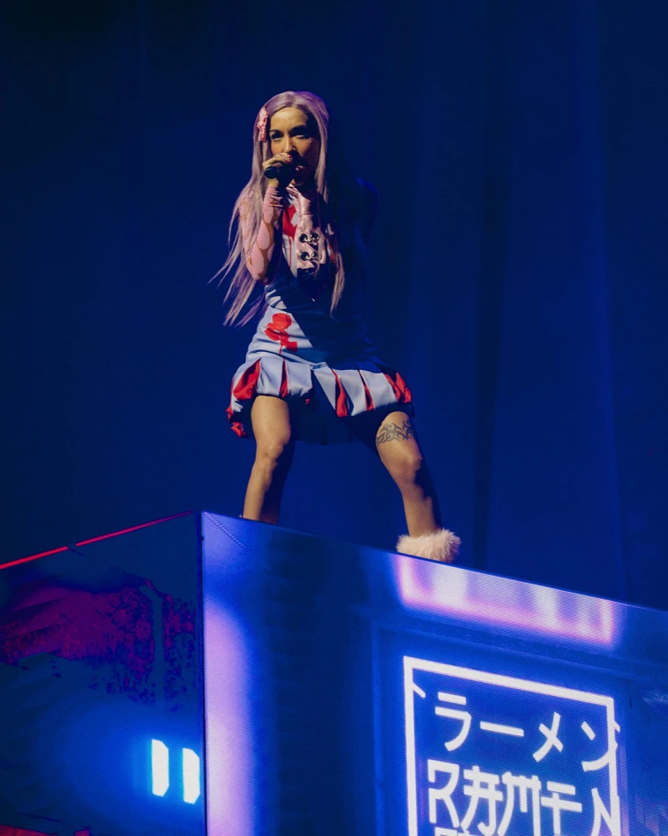 Con una propuesta estética teatral, llena de colores y guiños al universo drag, la artista presentó canciones de su álbum The Rise and Fall of a Midwest Princess y desató la locura del público con hits como “Hot to Go!”, “Pink Pony Club” y “Red Wine Supernova”.