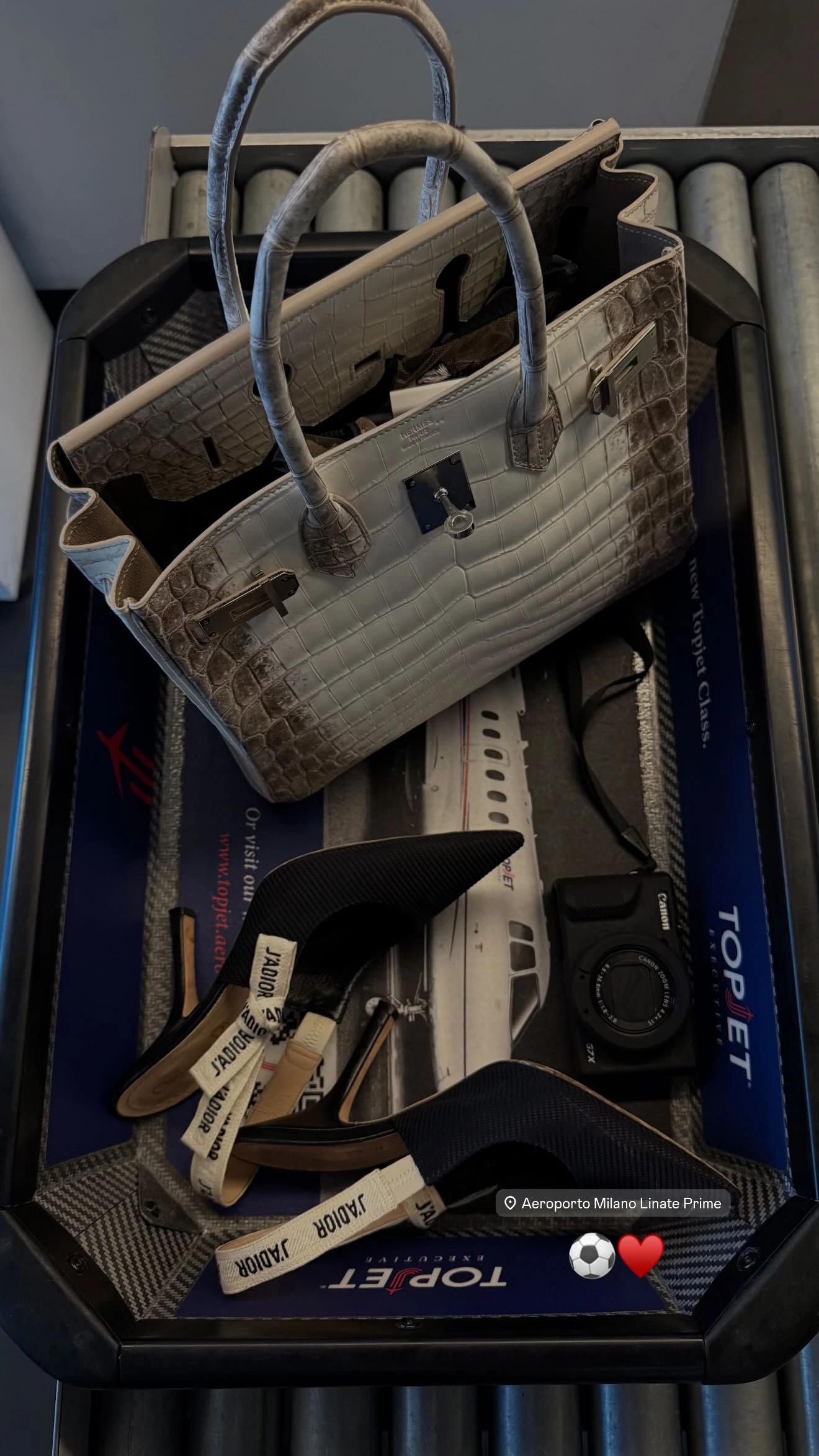Se trata de la Himalaya Birkin 30 de Hèrmes, una de las más codiciadas por los coleccionistas de la marca. Cuenta con el detalle de 18 kilates de oro blanco y diamantes incrustados. Esta bolso de edición limitada le salió al futbolista unos 300 mil euros y lo tienen famosas como Jennifer Lopez, Kim Kardashian y Georgina Rodriguez.