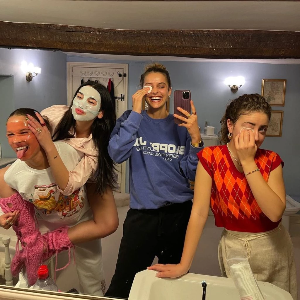 En su cuenta de Instagram Dua Lipa compartió una imagen con una mascarilla tissue, una de las favoritas en la cultura asiática. En la imagen luce muy relajada y disfrutando junto a un grupo de amigas.