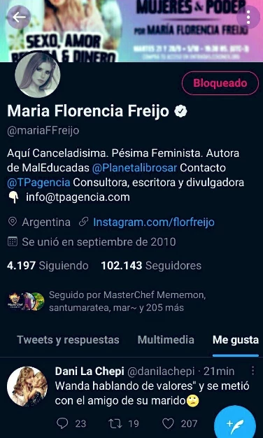 Además, este tuit recibió el like de una persona muy especial: María Florencia Freijo, señalada como "la vocera" de la China Suárez y autora del comunicado que publicó la actriz en sus redes después de desatarse el escándalo.