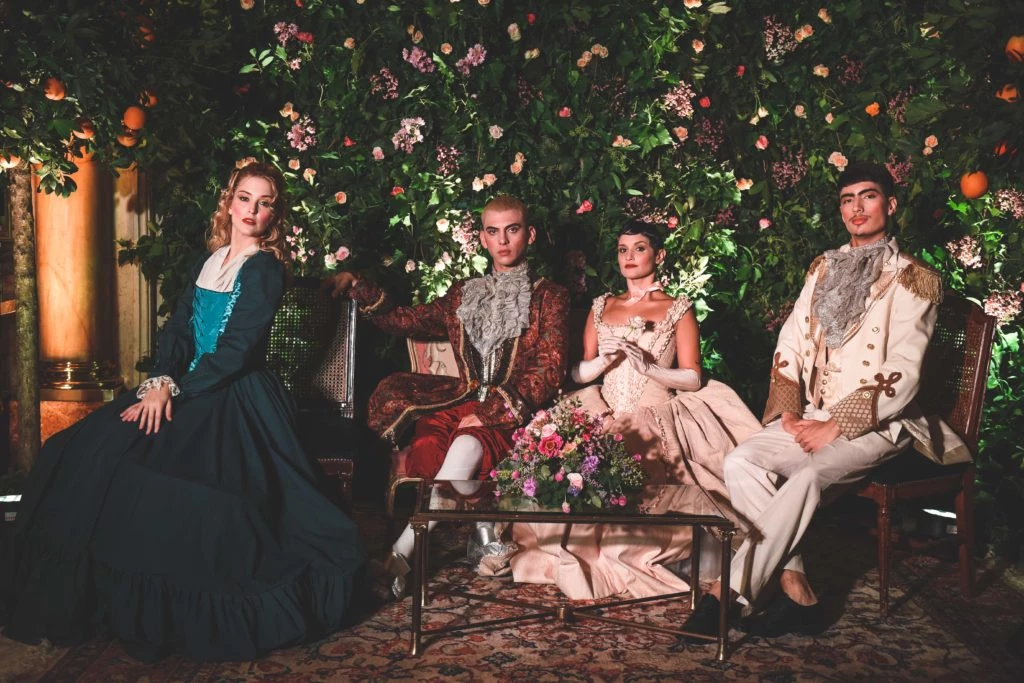 En su celebración en el Alvear, quiso emular los entornos en los que se exhibían durante las fiestas galantes: las mascaradas y los bailes, en los que el lujo, la magnificencia y el refinamiento decorativo cobraban una gran importancia. La ambientación es de Gloria César.