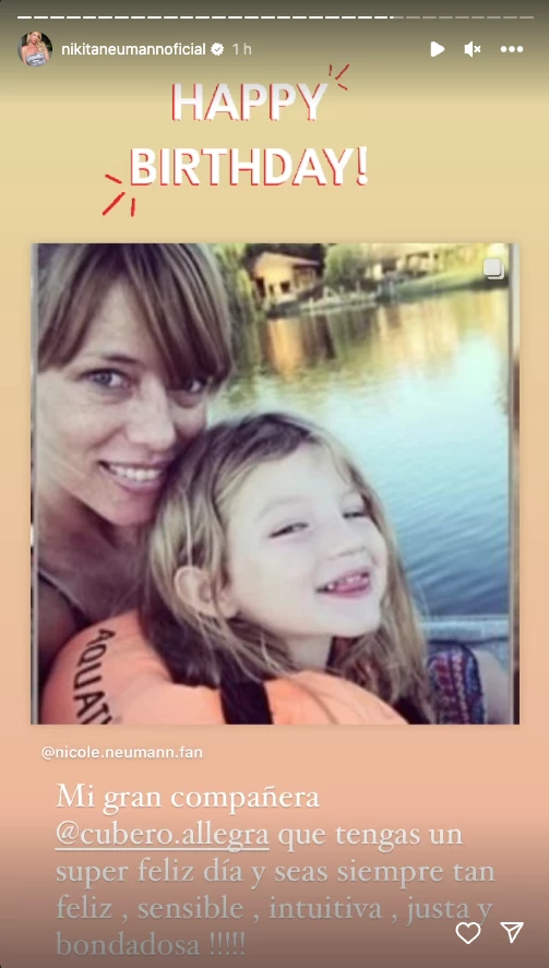 En tanto que en sus Historias de Instagram, Nicole compartió más mensajes, fotos y videos en donde aparece con su hija en distintos momentos de su vida. "Feliz cumple mi dulce Alu" y "Mi gran compañera, que tengas un super feliz días y sean siempre tan feliz, sensible, intuitiva, justa y bondadosa!", son los mensajes que la modelo le dejó a su hija en algunos posteos