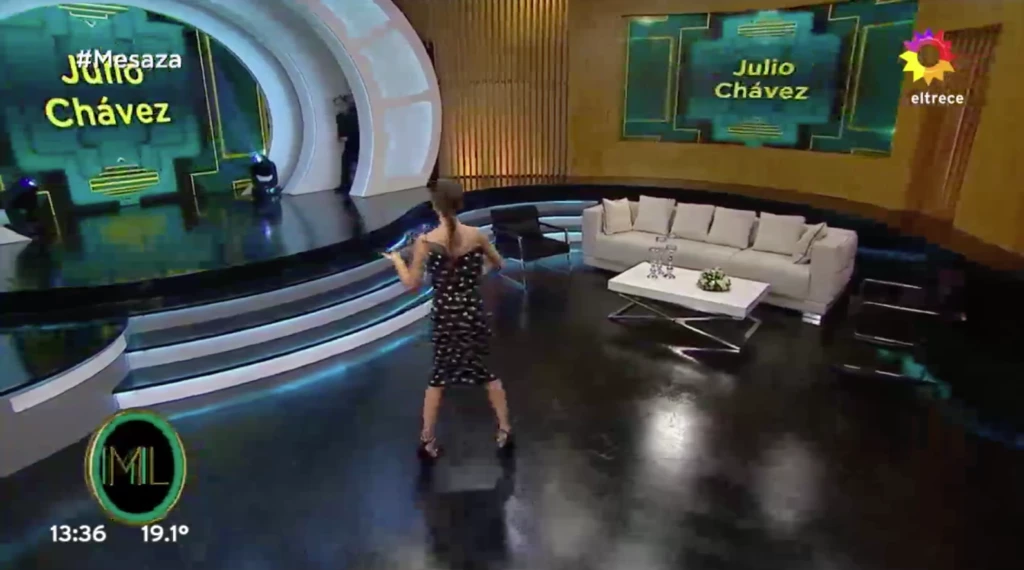 Luego de hacer las menciones publicitarias de rigor y de hablar de su vestuario, la nieta de Mirtha Legrand mencionó a los invitados y luego de decir el nombre de Chávez, comenzó a reirse. Por lo explicado minutos después, el actor pensó que era el momento de entrar al estudio y lo hizo, aunque no se vio en cámaras.