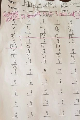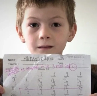 Si bien la historia es del 2019, la foto del niño posando junto a la mencionada tarea volvió a ser viral y revivió el caso. La prueba consistía en hacer en tres minutos la mayor cantidad posible de cuentas matemáticas de una lista de 60. El chico resolvió 13 y su maestra le dejó un mensaje en el papel.