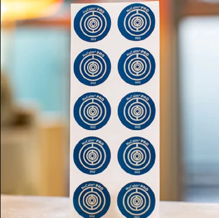 Este se trata de un disco de procesamiento de bioseñal de la marca NuCalm (en color azul). El mismo cumple la función de calmante, activando "el sistema nervioso parasimpático", para que el paciente pueda tener un “retorno rápido a un estado funcional (habilidades motoras, atención y cognición completa) sin efectos persistentes ni letargo mental”, según indica la página web del producto.