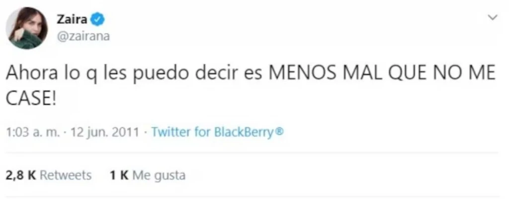 Ese mismo día, la modelo recurrió a Twitter y lanzó la frase que se volvería icónica en su vida: “Menos mal que no me casé”.