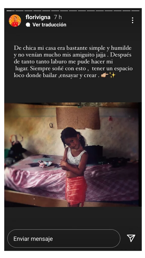 Lejos de ese pasado, pero sin olvidarlo, hoy la realidad de Flor es distinta y la dejó plasmada en las siguientes historias en donde mostró cómo ensaya en su domicilio actual, en donde cuenta con un espacio súper amplio, con todo su equipo.