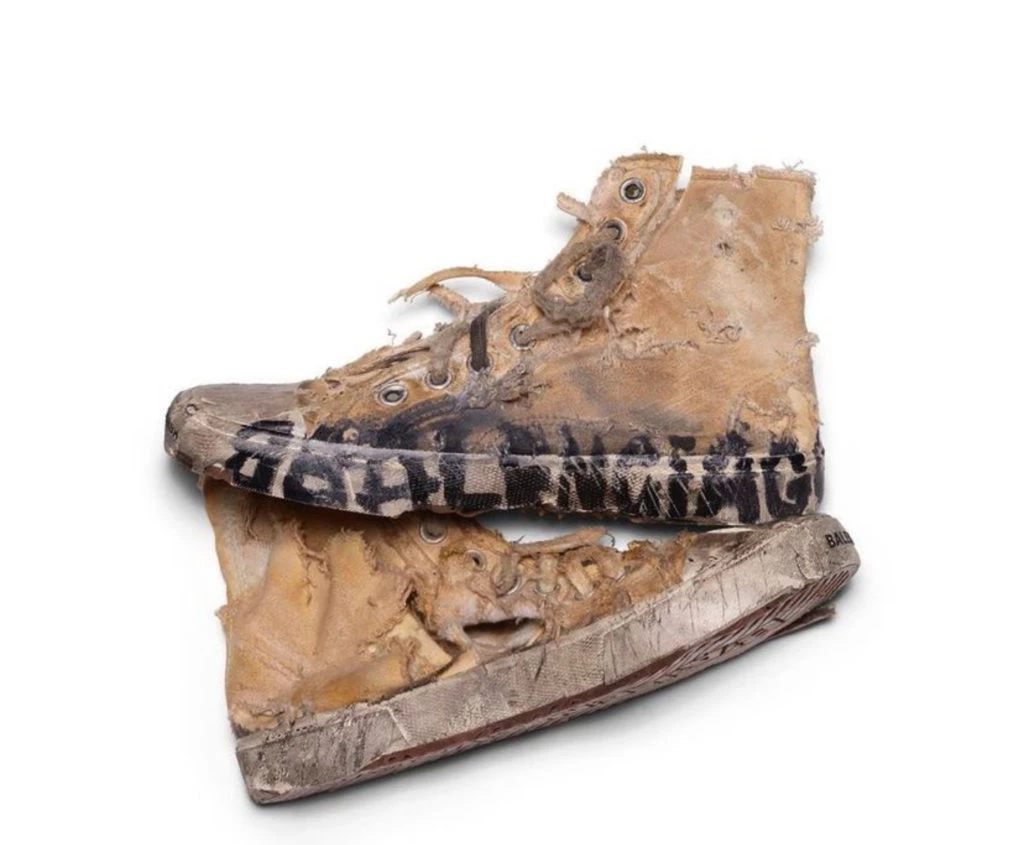 Las sneakers Paris se hicieron virales desde su lanzamiento en las redes sociales. Estas zapatillas cuentan con modelos impecables y con otros que lucen desgastados al extremo. Además, cuentan con la particularidad de tener "grafiteado" el nombre de la marca en la suela, caracterizándose por un efecto desteñido y desaliñado. Si bien en la publicidad, lucen completamente destruidas, la idea de Balenciaga era demostrar cómo se vería su producto dentro de los próximos 100 años de uso, logrando una gran repercusión.