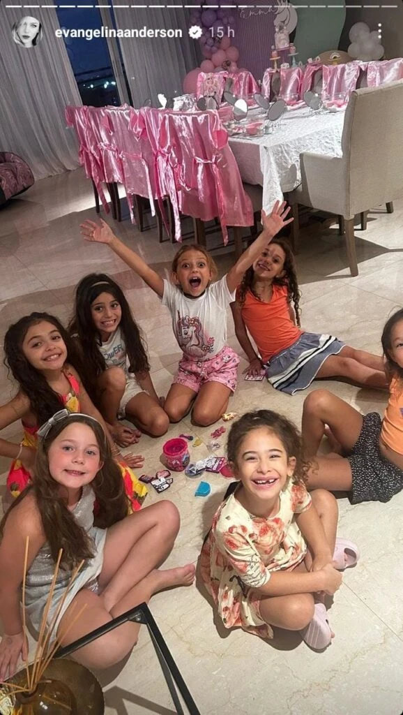 Por otro lado, Emma y las invitadas tuvieron la clásica pijamada pero en pequeñas carpas, haciendo de este momento muy especial. Lo más destacado fue la torta decorada con dos simpáticos unicornios. "Tal cual lo soñó", expresó Evangelina, desde sus redes sociales.