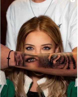 El joven futbolista, que ya tiene 16 años, eligió un diseño impactante y significativo. El tatuaje fue realizado con una técnica realista que reproduce con exactitud la mirada de Evangelina, en blanco y negro, con un nivel de detalle que llamó la atención de todos.