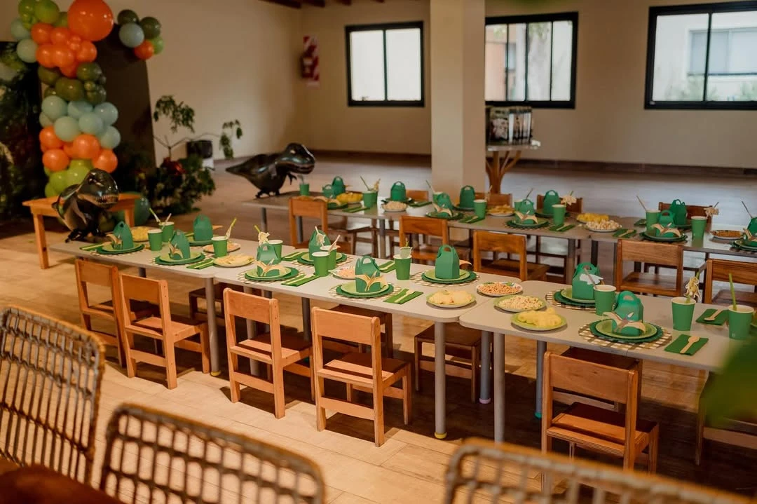 Y continuó: "Mi gordo feliz. con sus amigos, familia y compás del jardín. Gracias a todos por hacer un cumpleaños MEGA feliz". La decoración del lugar contó con globos verdes, celestes y naranjas, imágenes de dinosaurios y vegetación natural.