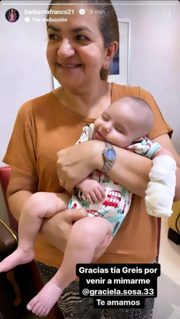 A través de su historia de Instagram, la joven se mostró agradecida con ella y compartió la foto que le tomó junto a su beba: "Gracias tía Greis por venir a mimarme, te amamos".