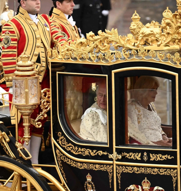 El carruaje que usan en esta primera procesión es más austera ya que todavía, Carlos III no ha sido coronado y ungido con el óleo santo. Es curioso que la procesión hizo el trayecto iniciando con una perfecta puntualidad pero llegaron a la abadía adelantados en tiempo.