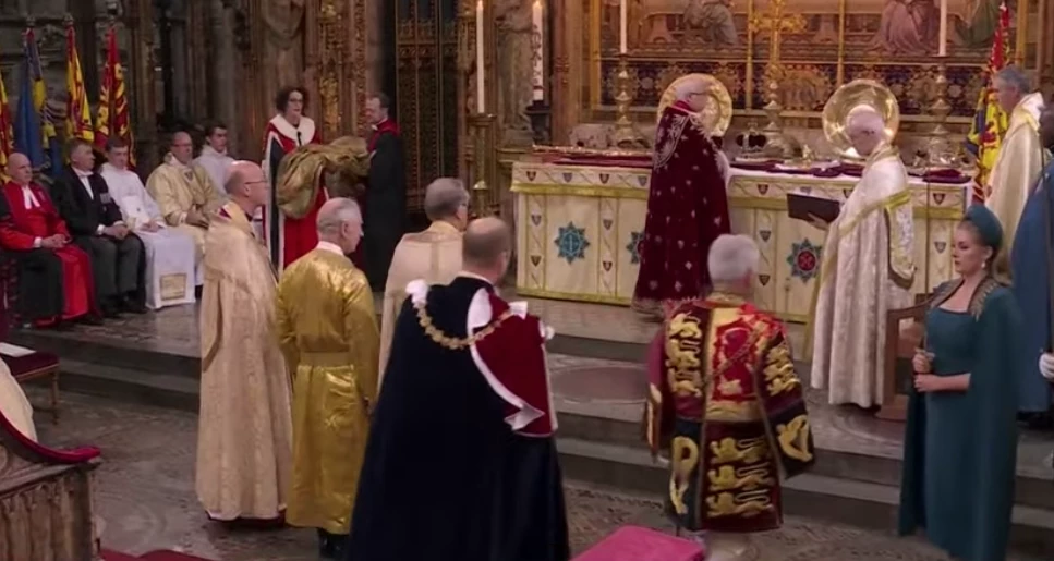 El arzobispo de Jerusalem va a presentar el óleo santo con el que será ungido el Rey. Otro detalle, el escudero del rey, el Mayor Mayor Jonathan Thompson, va vestido con un kilt escocés.
