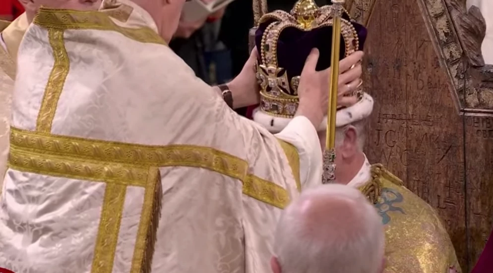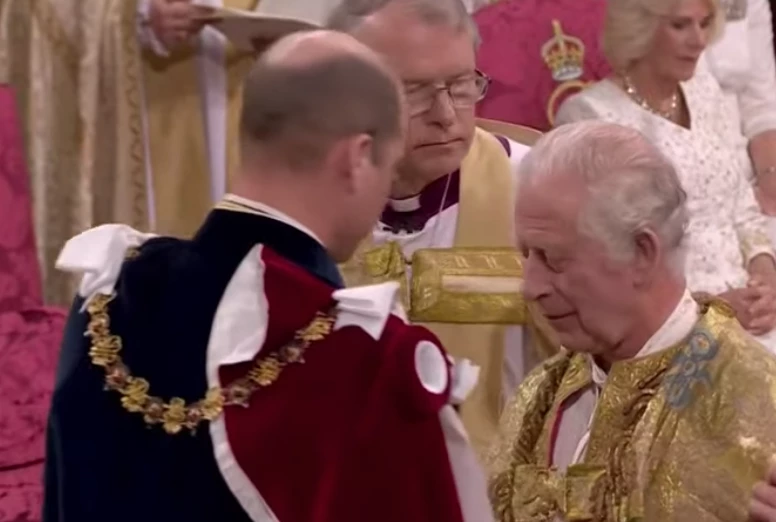 El arzobispo le toma juramento solemne al Rey: Si "promete cuidar el gobierno del Reino Unido, Irlanda del Norte y los demás territorios". Esto lo hizo sentado, luego se arrodilló para defender la ley de Dios, y los estamentos de la iglesia para luego besar la Biblia.