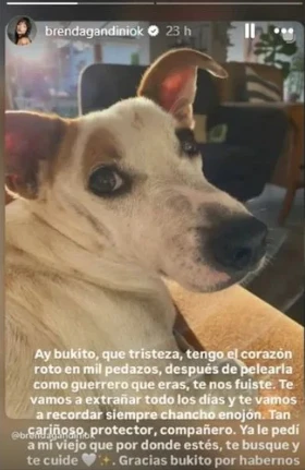 En sus posteos, Gandini dejó en evidencia que la pérdida de un animal es igual de dolorosa que la de un ser humano. "Gracias bukito por habernos dado tantos años de amor. Creo que solo las personas que tienen animales sienten lo que es la pérdida de estos seres tan especiales. Te amamos por siempre", destacó.