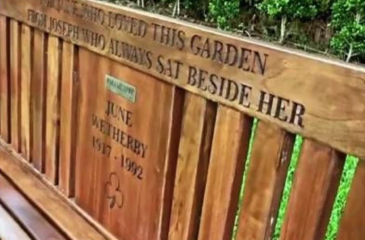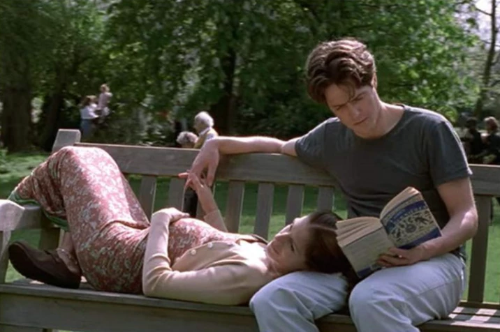 En la recordada escena del film, Julia Roberts y Hugh Grant están sentados en un banco donde se puede leer la inscripción: “Para June quien amaba este parque, para Joseph quien se sentaba junto a ella” (en inglés). Luego, en el banco se puede leer: “June Wetherby 1917-1992″.