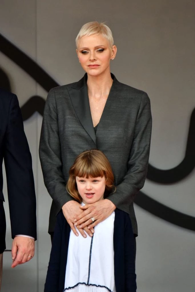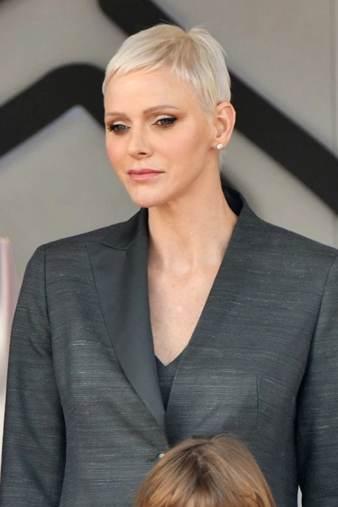 Para la ocasión, Charlene lució su tradicional cabello muy corto en rubio platinado -el mismo look que llevó en el posado familiar que hicieron para Pascuas- y vistiendo un tailleur de pantalón en tono gris oscuro.