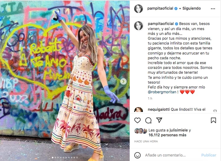 Minutos después del posteo de la modelo, el empresario también le dedicó un breve pero sentido mensaje. "Te amo con todo mi corazón Pampita. ¡Feliz día!", escribió Moritán, en sus redes sociales, junto a una tierna imagen. En el posteo, él acaricia el rostro de su esposa, que cierra los ojos y sonríe levemente, transmitiendo tranquilidad. De hecho, el político siempre hace demostraciones de amor públicas hacia ella, y no tiene inconvenientes en abrir su corazón ante sus seguidores.