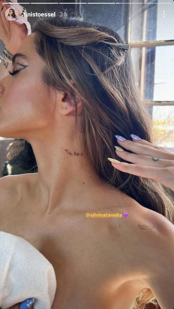 Ahora la joven artista decidió plasmar esa emotiva dedicatoria en su piel. Es por eso que recurrió a una tatuadora, le llevó el mensaje escrito por su padre y se lo tatuó en el cuello.