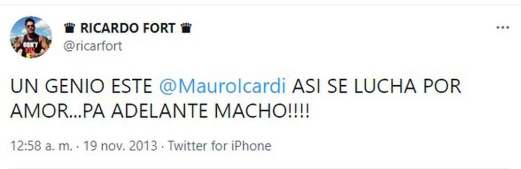 Era el 19 de noviembre de 2013, justo seis días antes de fallecer, publicó en Twitter: “Un genio este Mauro Icardi. Así se lucha por amor… pa delante macho”. El momento histórico en el que se dio…. Si, también era un revuelo.