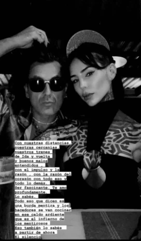 Por medio de la red social Instagram, Coti expresó: "Con nuestras distancias, nuestras cercanías, nuestros trenes de ida y vuelta y buenos y malos entendidos, con el impulso y la razón, con la razón del corazón, con todo eso y todo lo demás. Ser fascinante, te amo profundamente, lo sabés", comenzó su publicación.