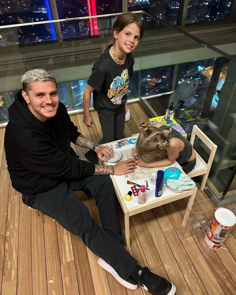 Por medio de sus redes sociales, Icardi compartió varias imágenes y hasta un video, que muestran a la más pequeña pintándole las uñas de color negro a su papá. Con varios esmaltes, brillos y otros accesorios de manicuría, Isabella reveló que una de sus pasiones es pintar y decorar uñas, pero más las del futbolista.