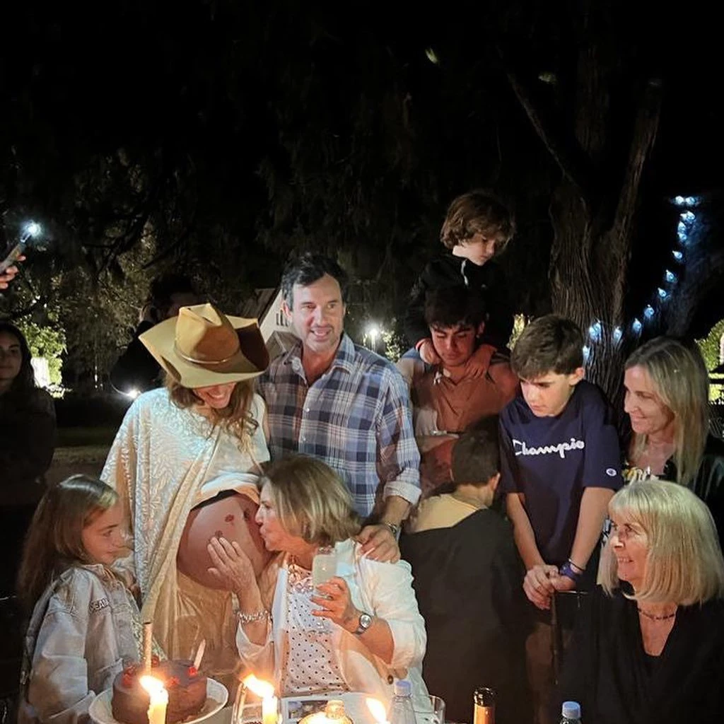 En la reunión estuvieron presentes la madre de Aíto, Inés Pertiné y la hermana de Calu, Marou Rivero, además de otros familiares. A través de un breve video, la actriz compartió las imágenes donde los integrantes más pequeños del clan, se emocionan al ver al bebé moviéndose en la panza.