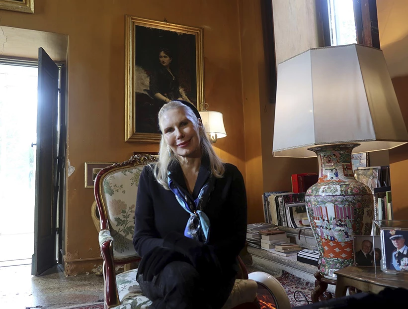 Contemplando con añoranza el retrato de su marido, el aristócrata Nicolò Boncompagni Ludovisi, fallecido en 2018, la rubia actriz de Texas (EEUU), la "última princesa" del palacio Caravaggio, Rita Jenrette, recuerda el desconcierto que sintió cuando recibió la orden del juez para sacar a subasta su "hogar".