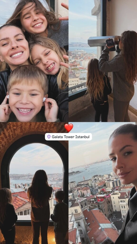 Durante el recorrido, la actriz compartió también un video de sus hijos caminando por los alrededores de la torre. “Amancio hace días quería conocer la Torre de Gálata. Hoy lo llevamos y estaba feliz”, expresó con emoción, revelando el espíritu familiar que marcó la jornada.