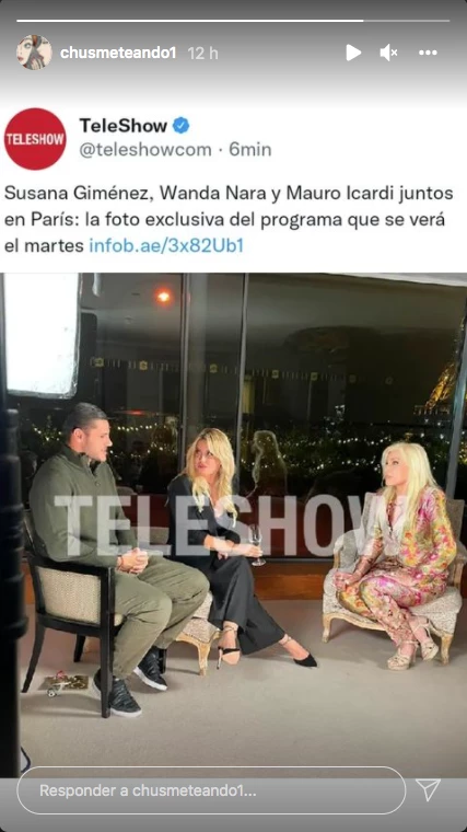 En cuanto al especial con Susana, se grabó en parte en un set montado en el hotel, con la torre Eiffel de fondo. Según pudo saberse, Susana preguntó de todo y Wanda contestó cada uno de los temas. Más tarde se sumó Mauro, a quien en una toma que logró Teleshow se lo ve algo tenso mientras Wanda lo mira algo desconcertada.