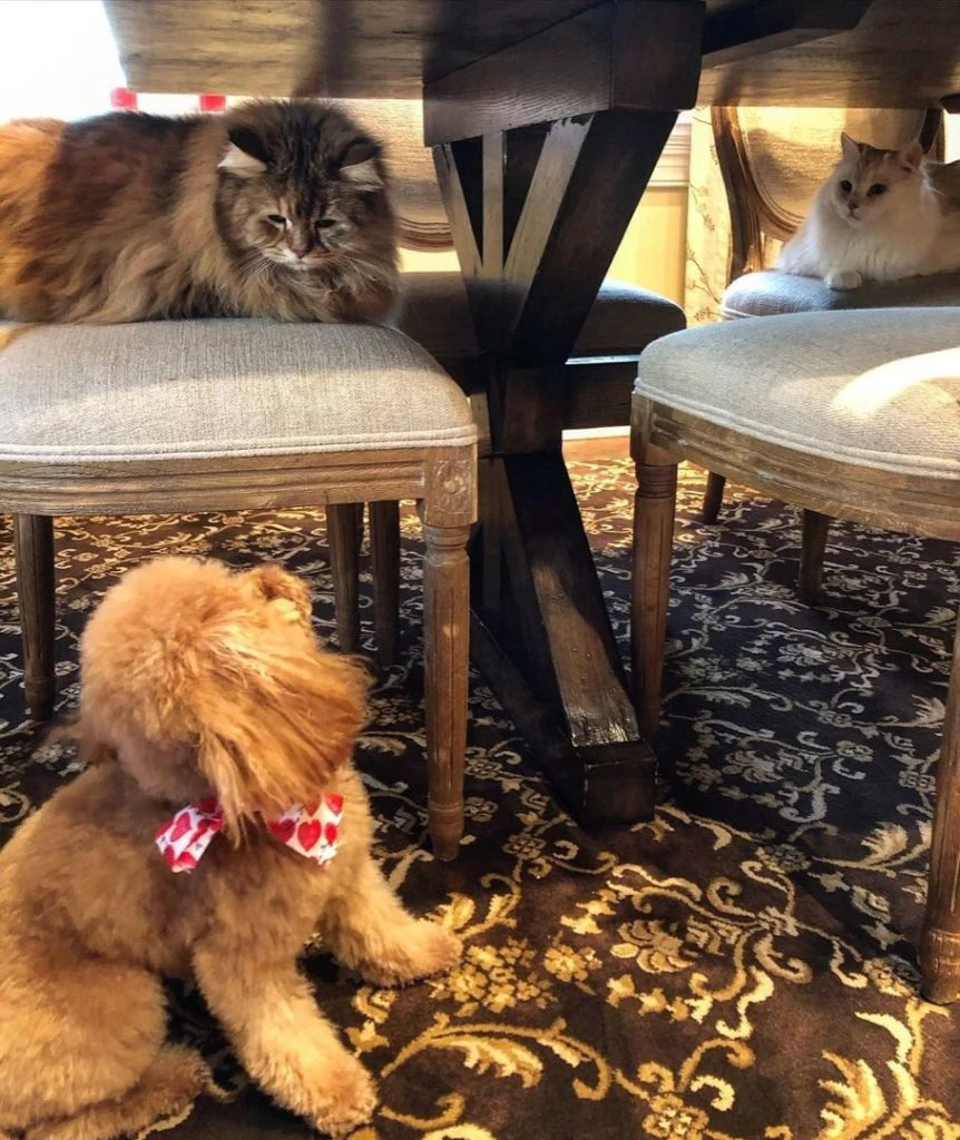 Nicole suele compartir tiernas imágenes de sus mascotas: dueña orgullosa de su consentido Louis, así como de sus gatos Ginger y Snow. También tienen otro perrito llamado Julian.