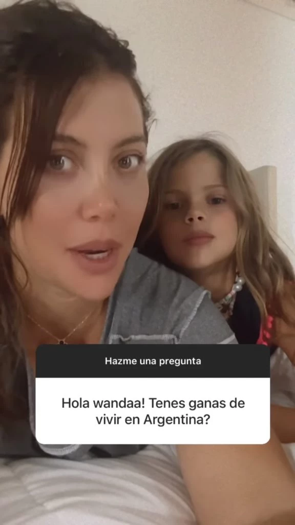 "Sí, pero con papi" dice Francesca cuando Wanda le dice la pregunta de un seguidor que le consulta si tiene ganas de vivir en Argentina. Es que si bien el jugador de fútbol viene a visitarlos, las separaciones no son fáciles para los más chicos de la familia, menos con padres viviendo en distintos continentes. Así que Francesca solo se instalaría en el país si también lo hace junto a sus padre. Y hay rumores de que podría venir a jugar acá, una vez que termine su temporada en Turquía.