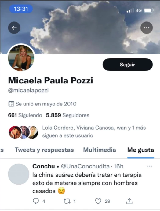 Corroborando que realmente hubo un intercambio de mensajes entre Icardi y la China, y que ese mensaje insinuante existió, hace pocas horas también se conoció el mensaje de una amiga de Wanda, Micaela Paula Pozzi, quien escribió: "La China Suárez debería tratar en terapia esto de meterse siempre con hombres casados". Fue la periodista de espectáculos Juariu quien retuiteó el mensaje de Pozzi.