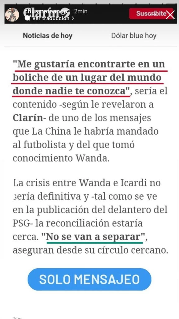 Hace pocas horas, el acertijo comenzó a desentrañarse. Según lo publicado por Clarín, la China Suárez efectivamente habría intercambiado mensajes con Mauro Icardi. Y uno de los que más habría enfurecido a Wanda es el que decía: "Me gustaría encontrarte en un boliche de algún lugar del mundo donde nadie te conozca".