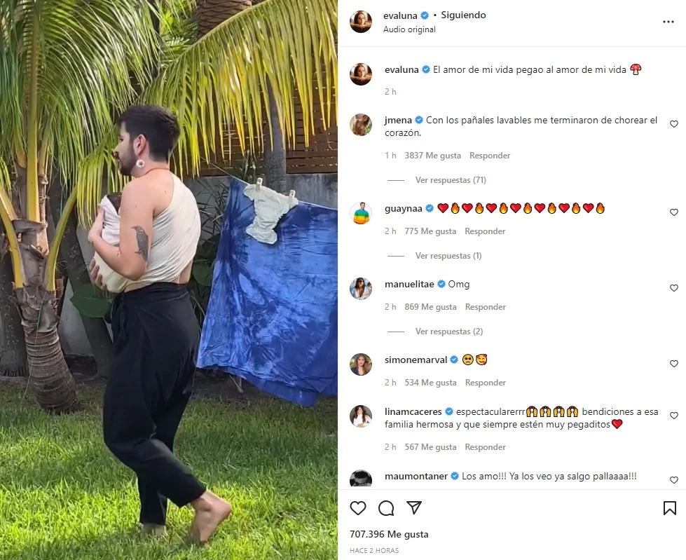 La cantante mostró un dulce momento de su esposo junto a su beba y escribió enamorada: "El amor de mi vida pegao al amor de mi vida". Además musicalizó su publicación con la nueva canción del artista colombiano.